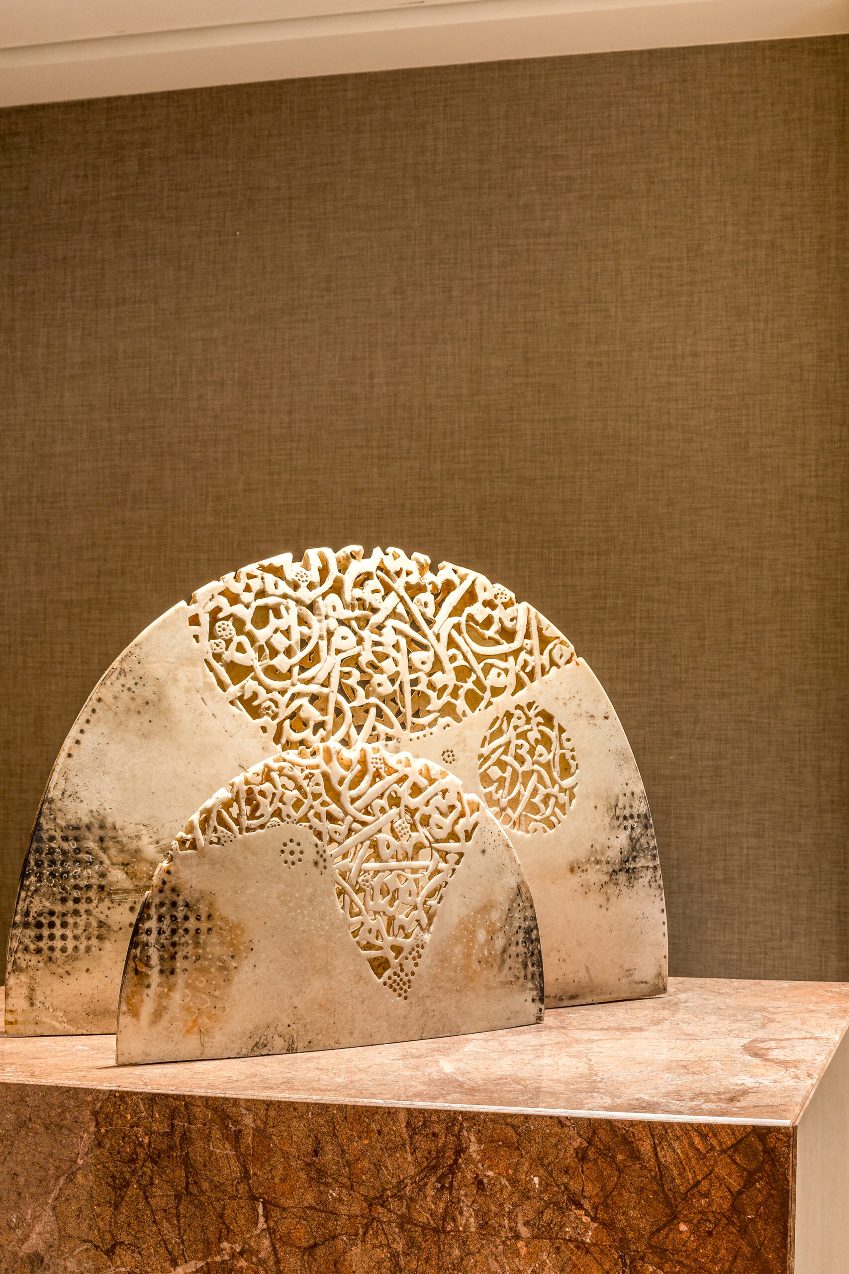 Inspired by Saudi Arabia’s coastal landscapes, the artist weaves together geometric patterns and flowing lines to reflect the harmony between cultural motifs and the free-flowing forms of the sea and desert. Each knot is a tribute to the enduring spirit of coastal heritage, blending tradition with the natural world.