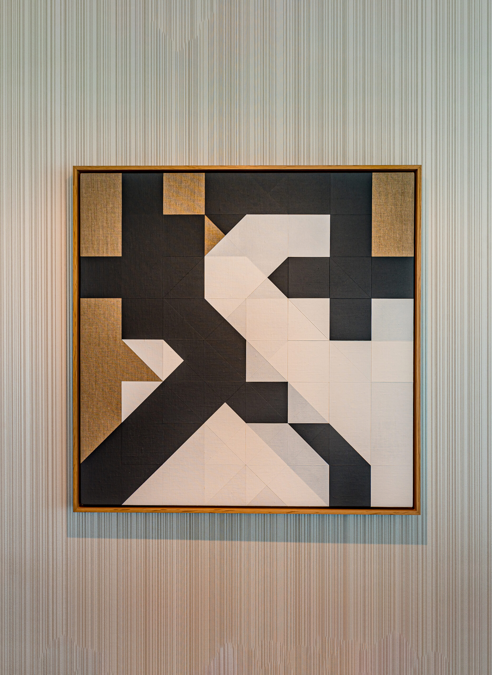 Hackney’s chess paintings are made by translating the constituent moves of a selected chess game into a single, multilayered painting. Each canvas is first divided into the eight-by-eight square grid of a chess board, with each move then painted, in sequence. As the game progresses, the layers begin to overlap and overlay resulting in a composition of variable density, delineated by ridges of paint. At the end of the game, squares of the board that were left uncrossed remain unpainted, leaving visible areas of the bare canvas.