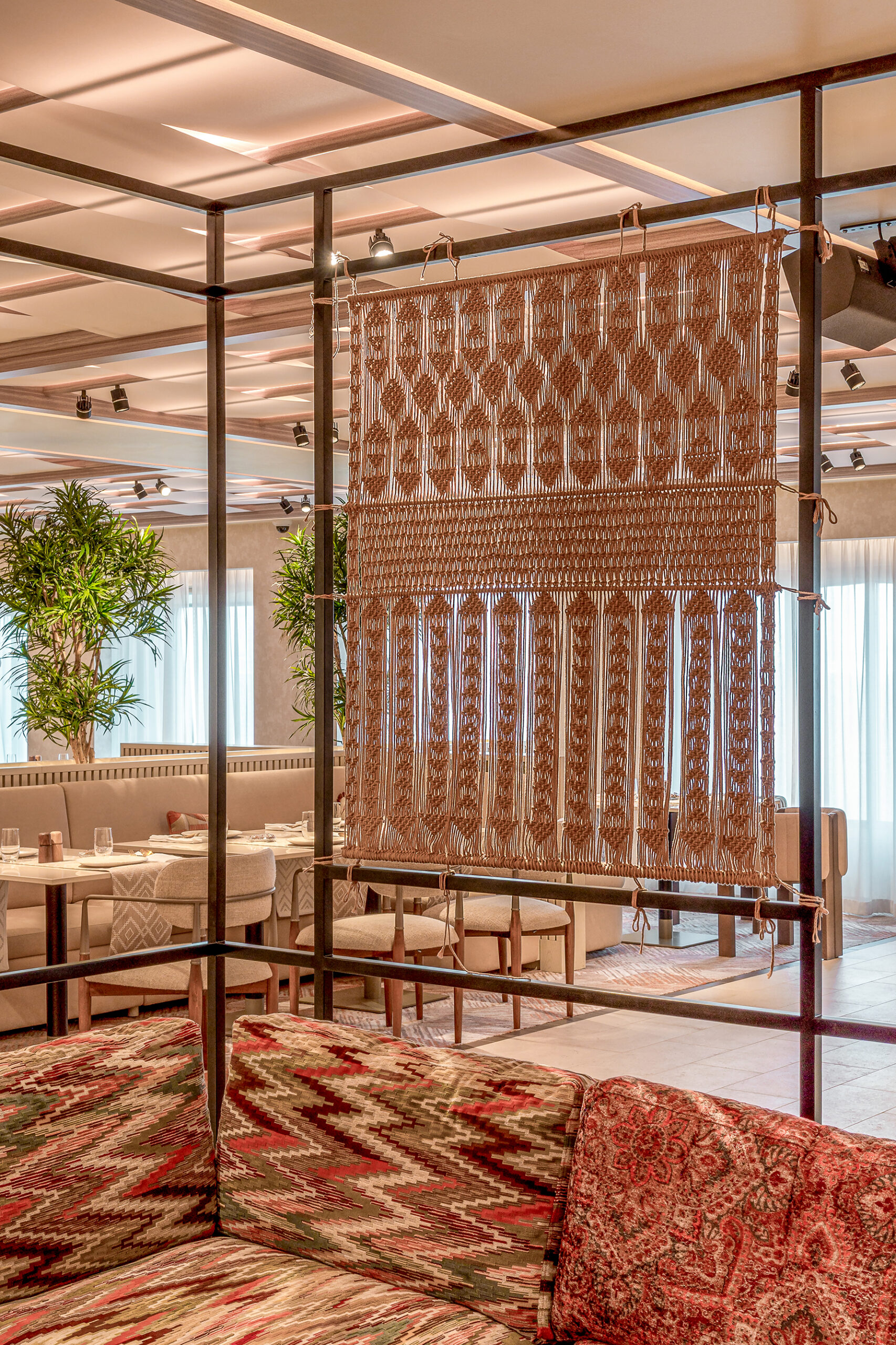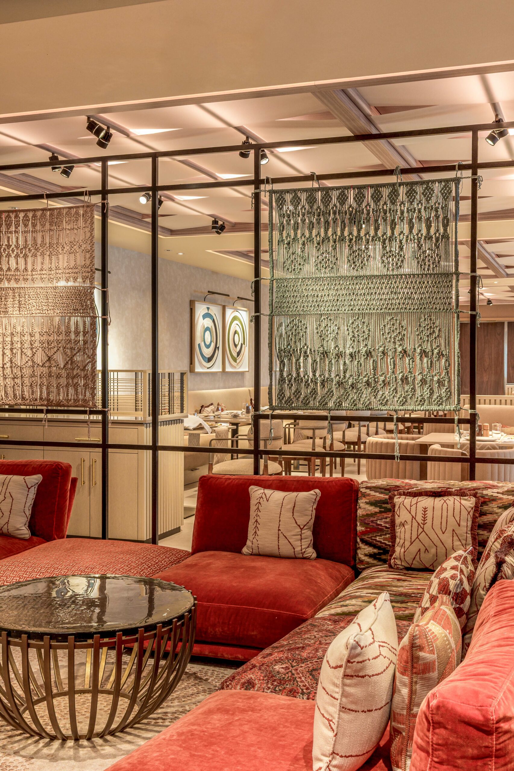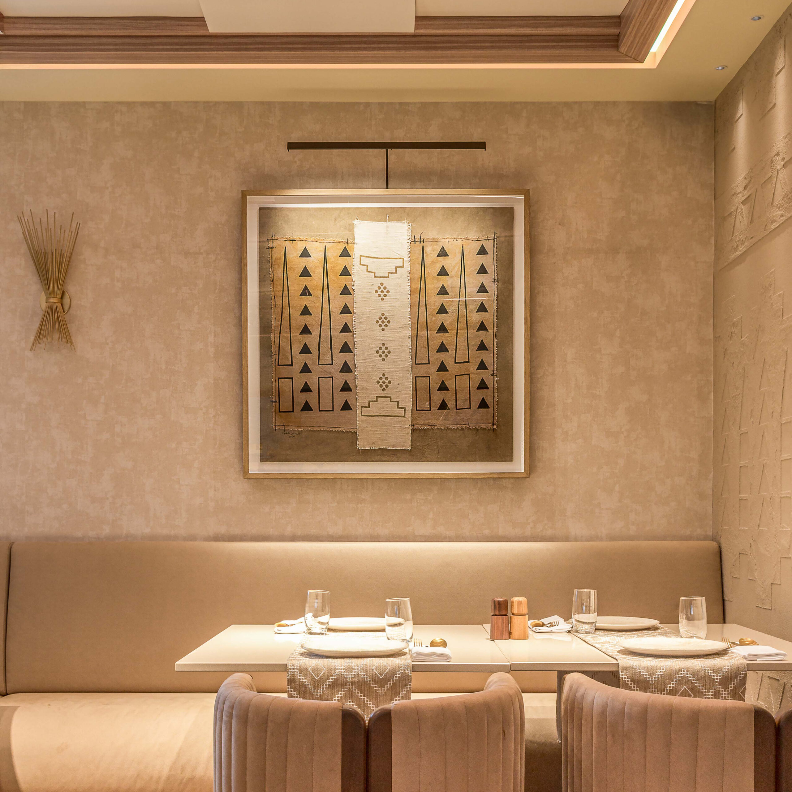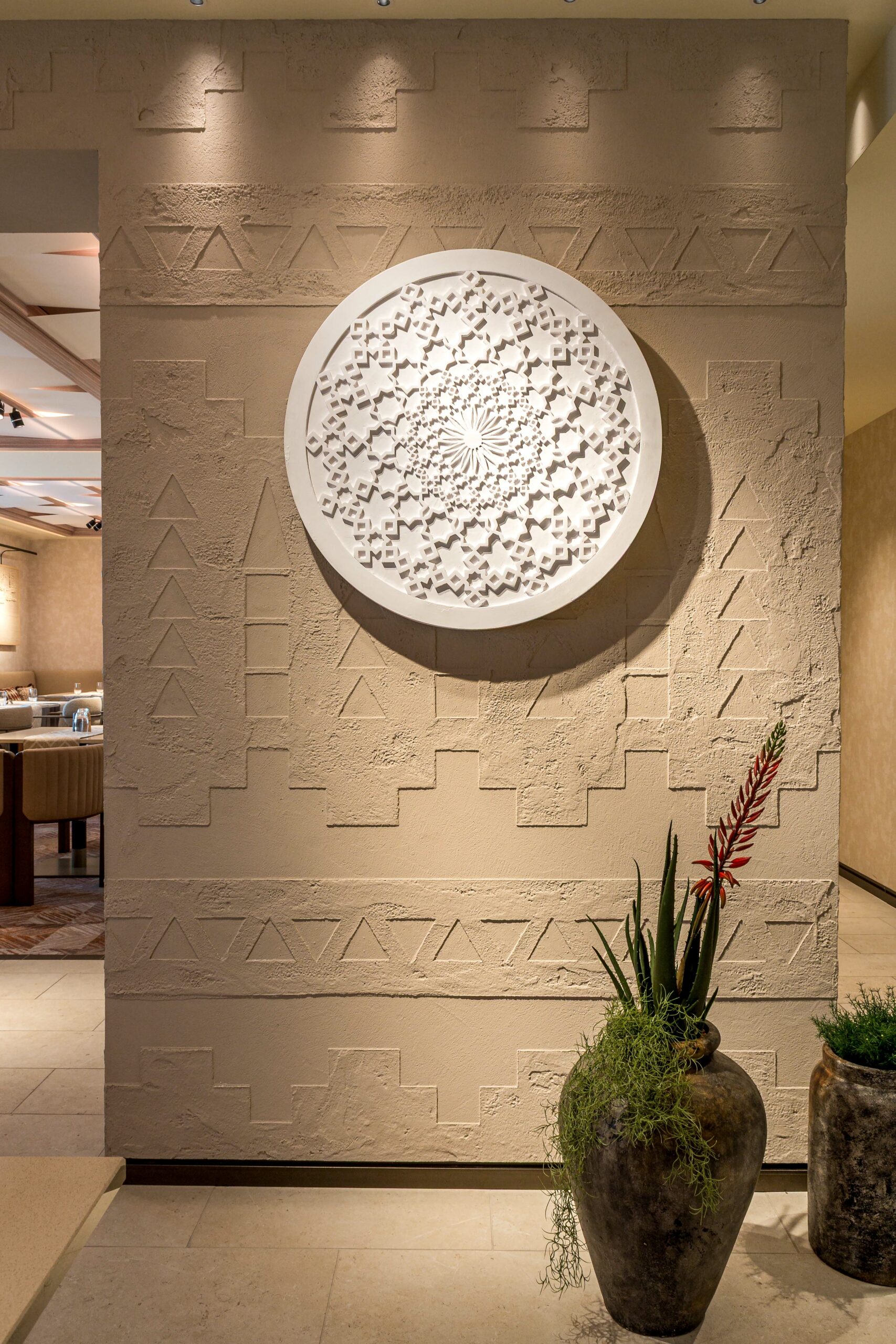 The artworks themselves are a testament to craftsmanship and cultural storytelling. Plasterworks capture the intricate beauty of Hijazi screens found in historic Jeddah, while hand-painted palm fronds weave together Najdi motifs with decorative patterns from Al-Ahsa. Textiles are dyed using natural pigments extracted from plants and herbs, creating pieces that are both visually striking and deeply connected to the land. The result is a collection that is as diverse as it is rooted in tradition, bringing Saudi Arabia’s artistry vividly to life.
