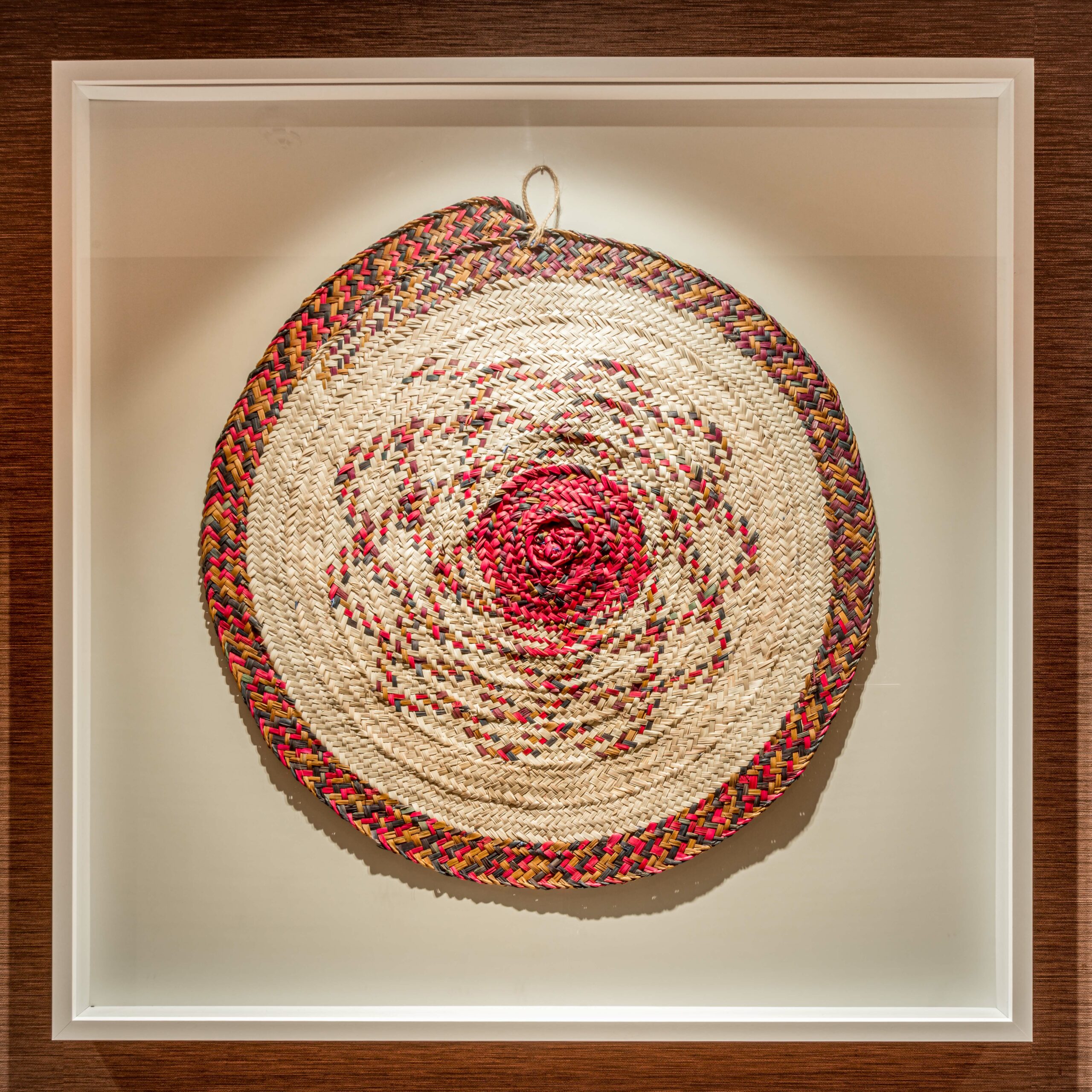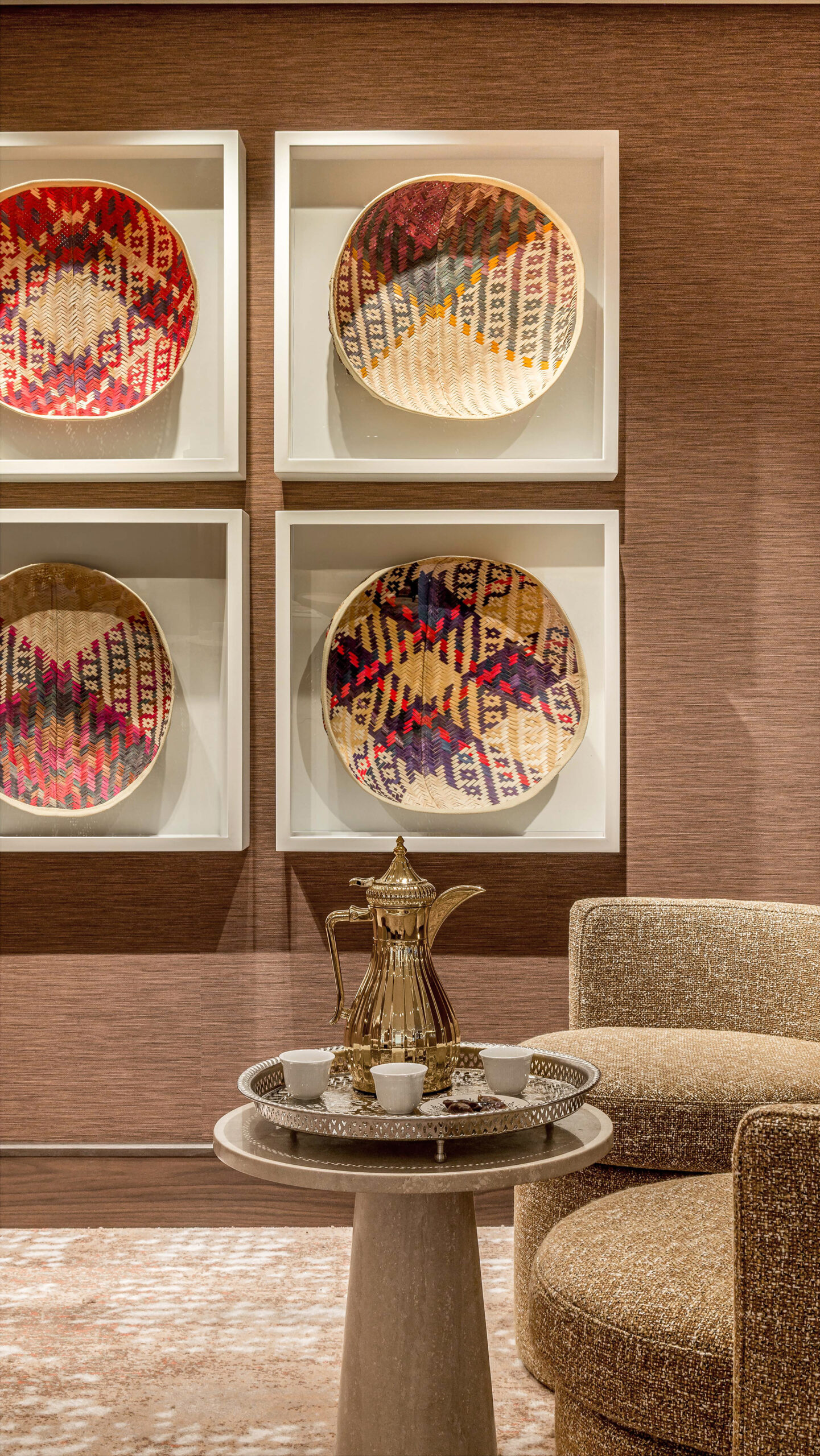 This bespoke collection of 16 wall reliefs celebrates the rich tradition of palm weaving, crafted entirely from the remains of palm tree waste. Each piece reflects a deep connection to the artisans’ environment in Safwa, Eastern Province, transforming local materials into intricate, textured artworks that honor both heritage and sustainability.