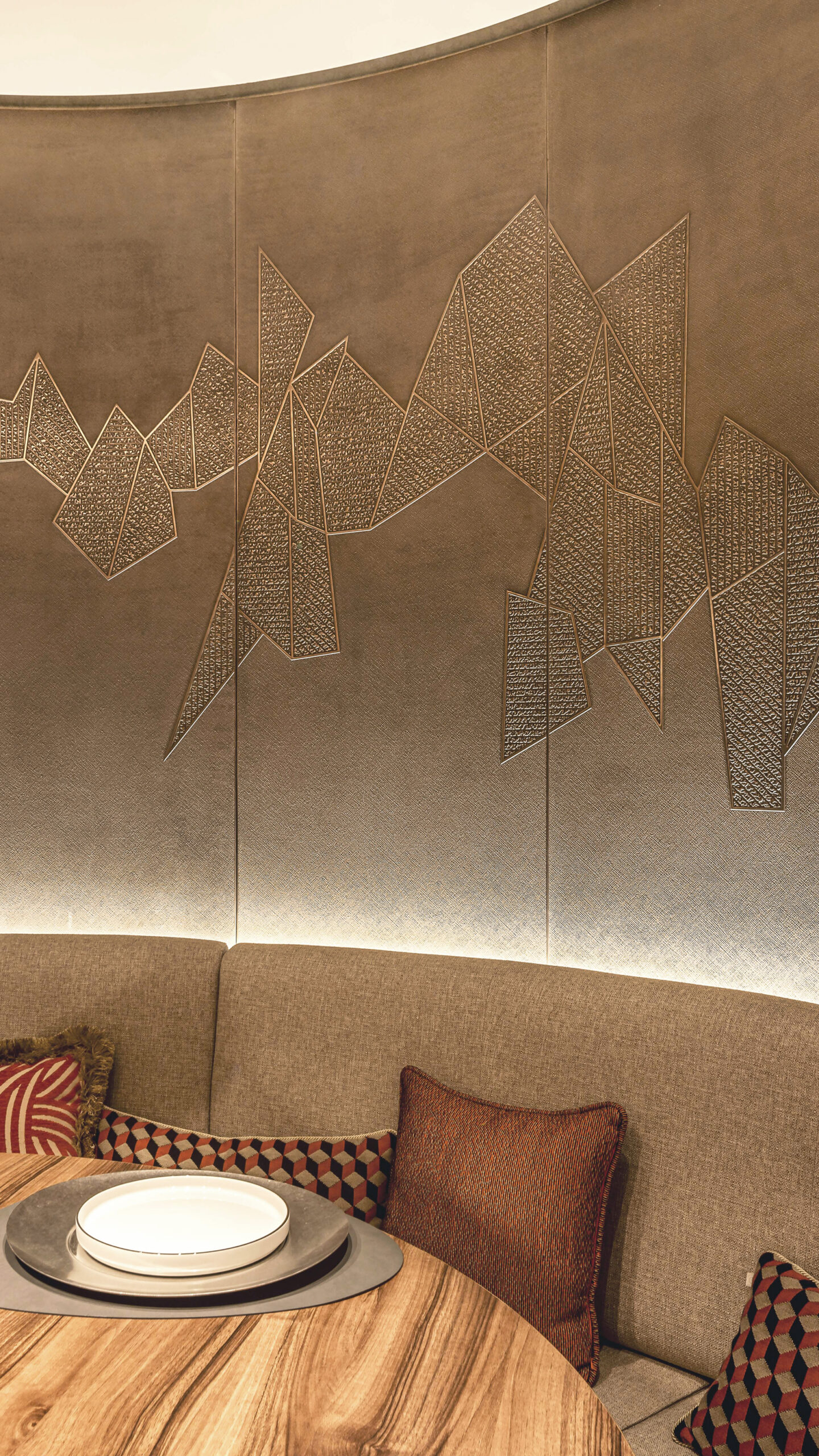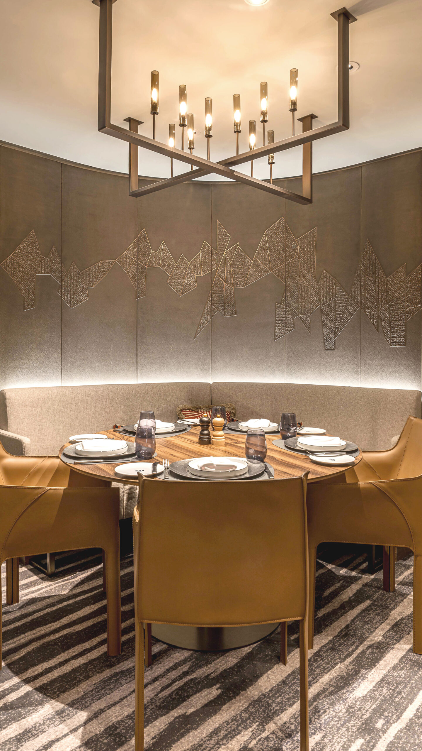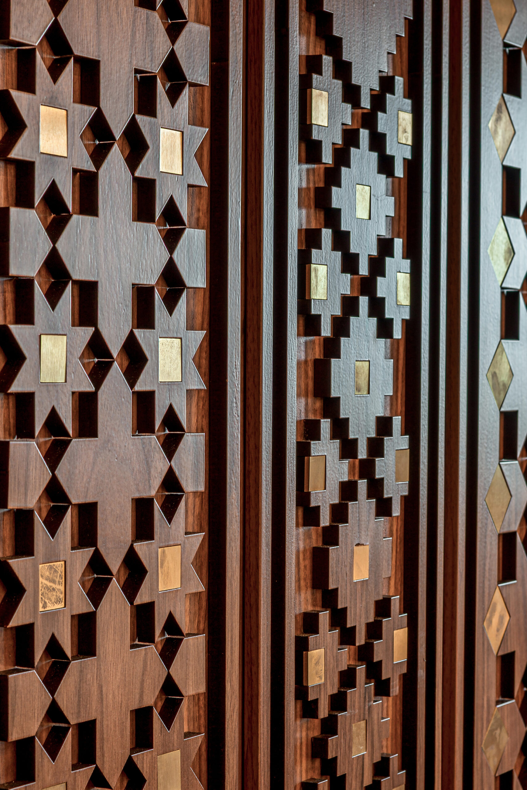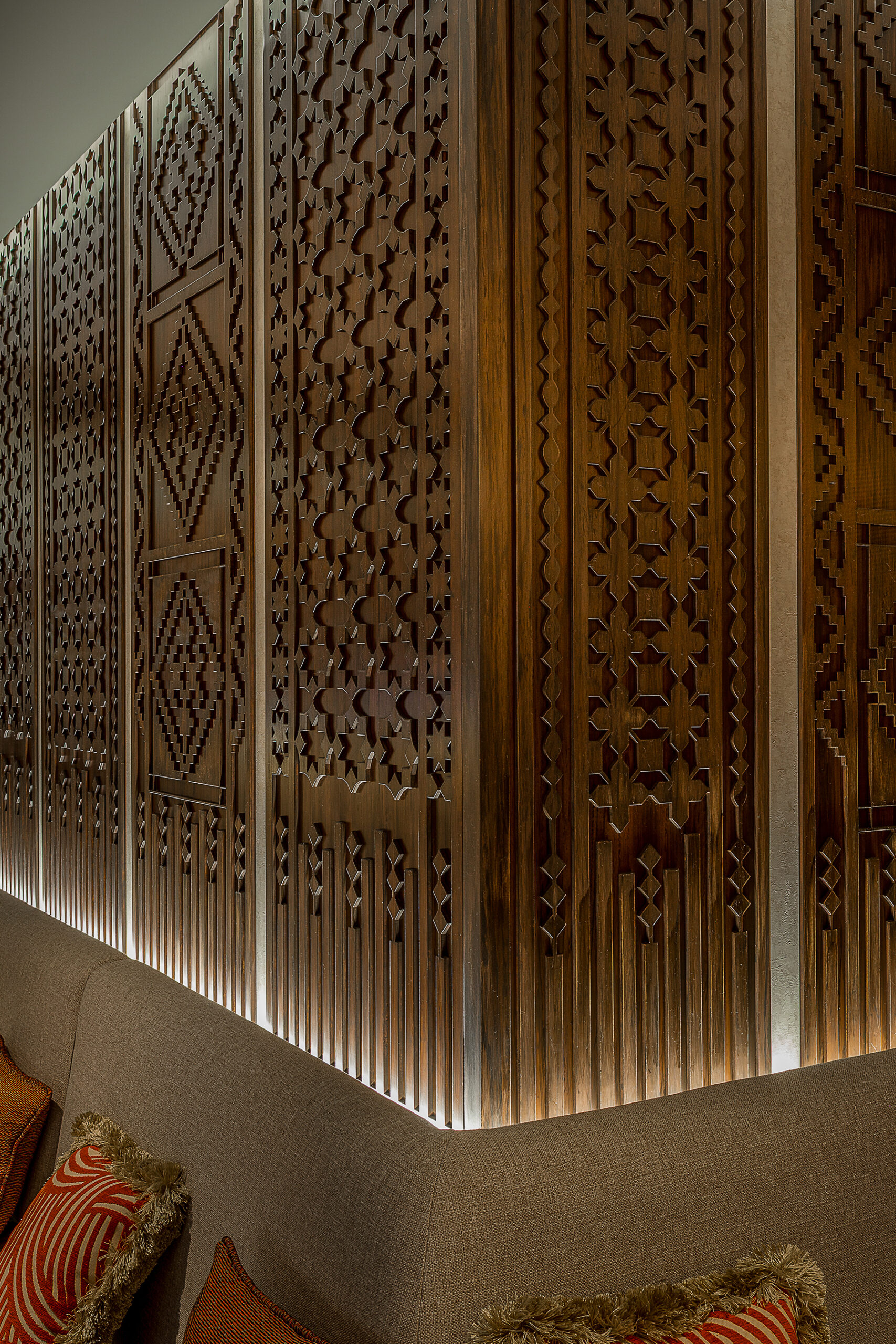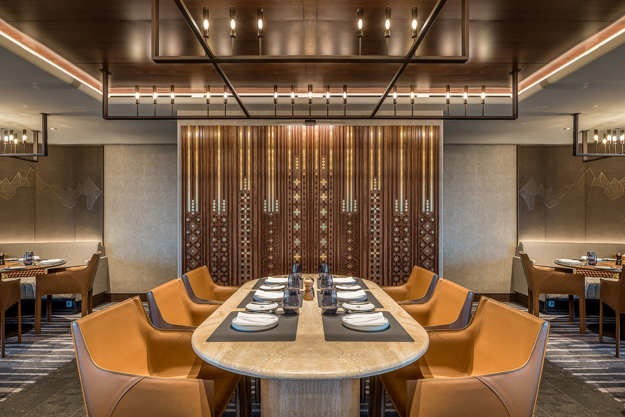 MEAST Steakhouse features a collection of artworks across a variety of mediums, all inspired by traditional Lebanese architectural patterns and regional tilework. From CNC-cut timber to intricately carved metal pieces, each artwork is thoughtfully integrated into the architecture, creating a seamless dialogue between design, material, and cultural heritage.